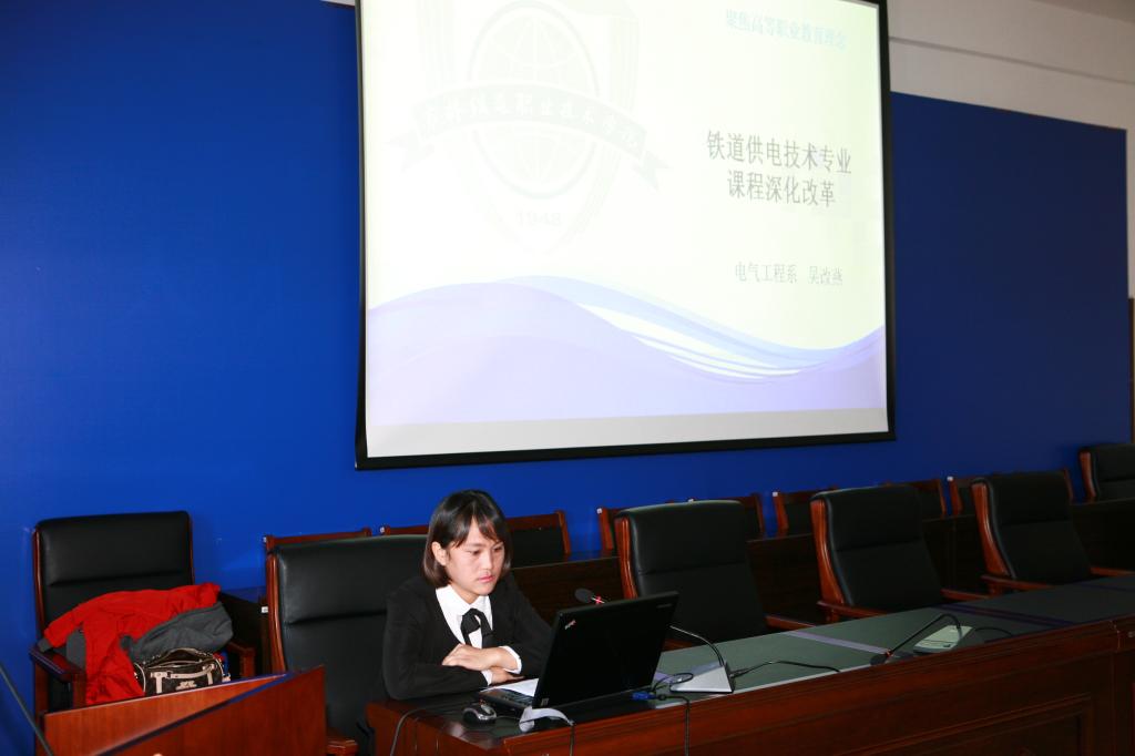 在讲座中,吴改燕老师结合自己的教学经验、实习体会,从高等职业教育理念、高等职业教育课程及教学现状、电气工程系课程深化改革、铁道供电专业课程开发四个方面进行了论述。