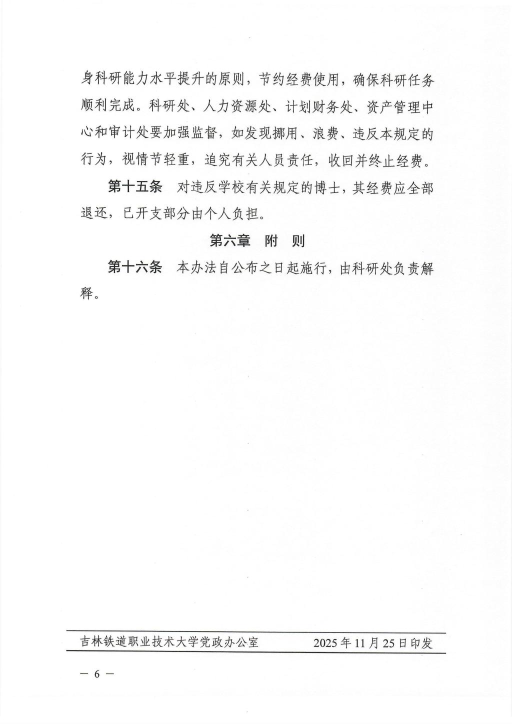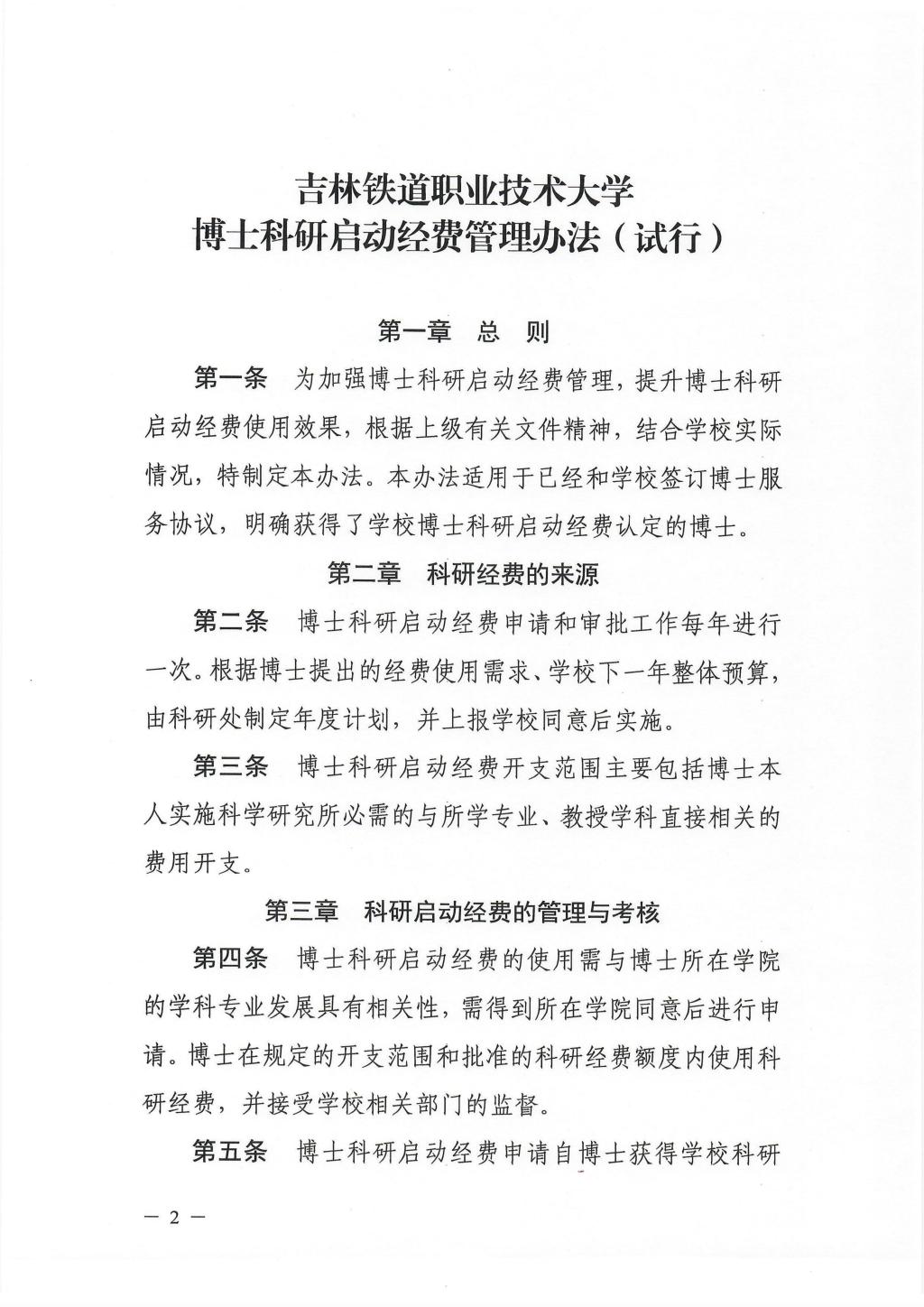 关于印发《吉林铁道职业技术大学博士科研启动经费管理办法(试行)》的通知