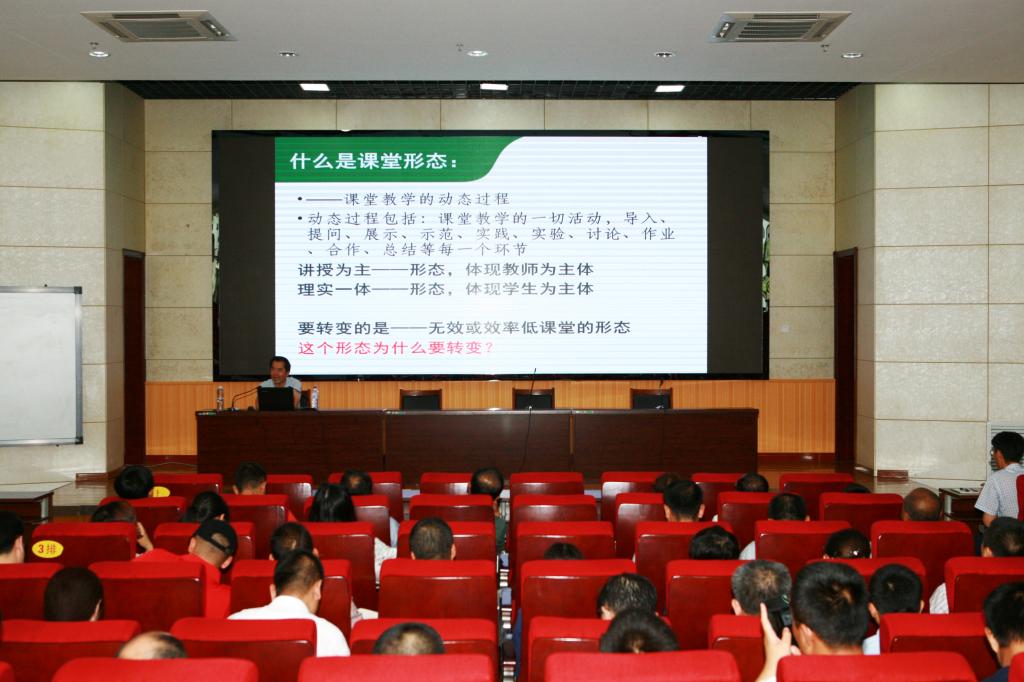 报告会上,高树德教授以《课堂形态转变的研究与实践》为题,从地高职课堂的认知、当前课堂的问题、课堂形态转变的途径、关于课堂质量四个方面进行了论述,提出了“三主”、“三自”、“三动”的观点。他指出,课堂中应充分体现素质教育的贯穿,要坚持教师的教是在为学生的学服务的原则,课堂教学形态转变必定会取得预期的效果。