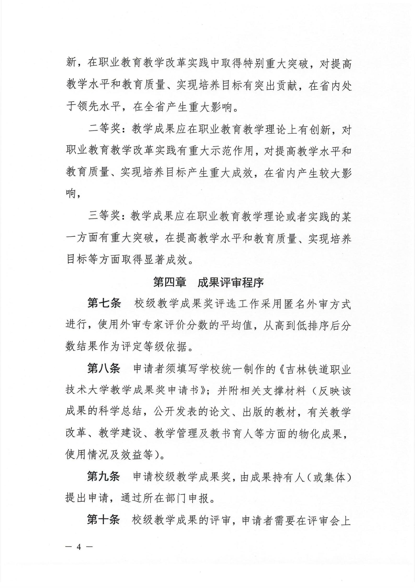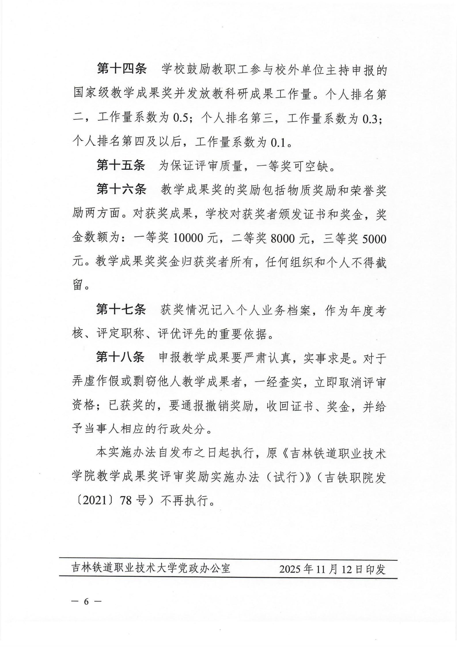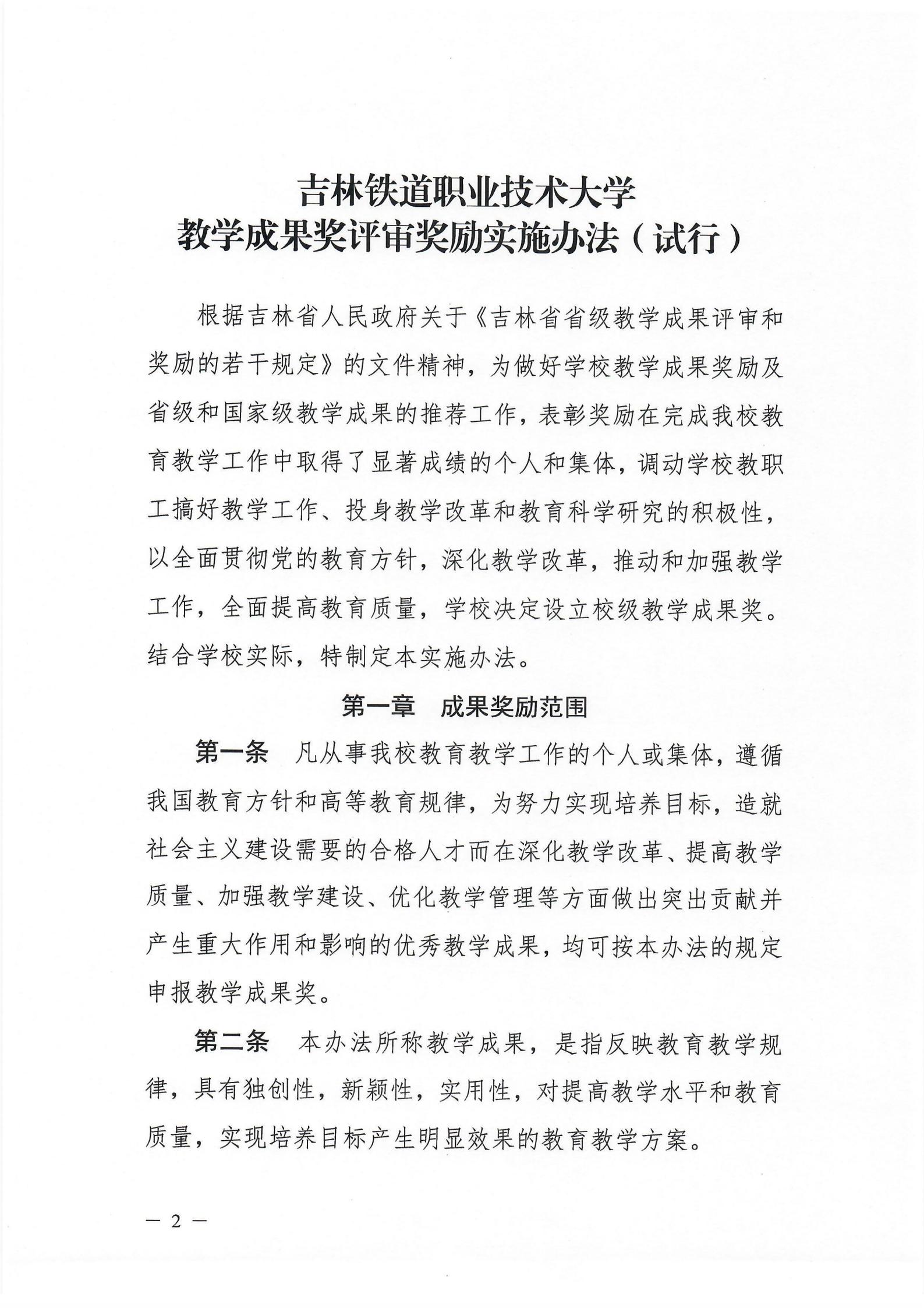 关于印发《吉林铁道职业技术大学教学成果奖评审奖励实施办法(试行)》的通知